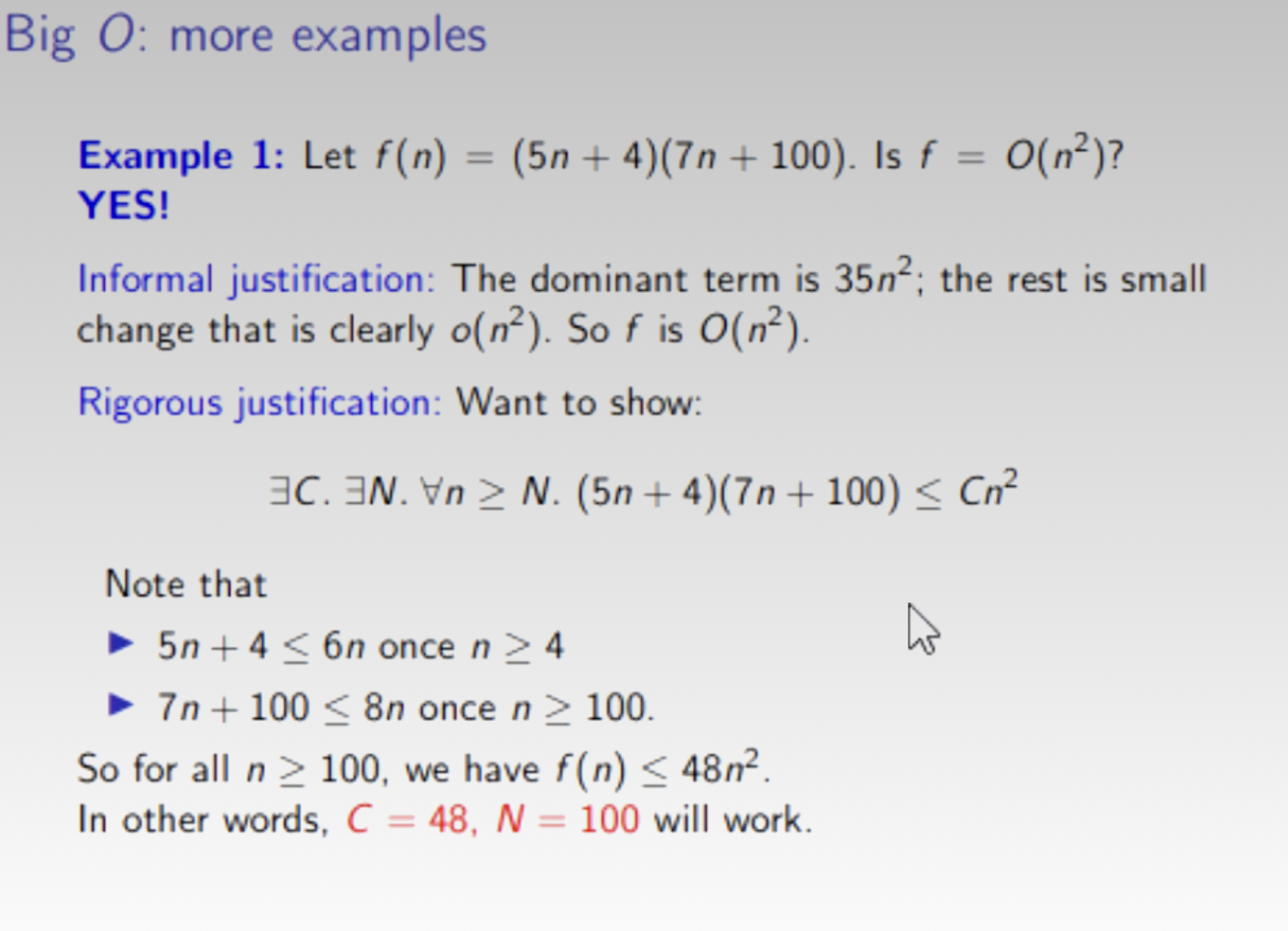 - Definition: if there exist positive constants and such that for all .