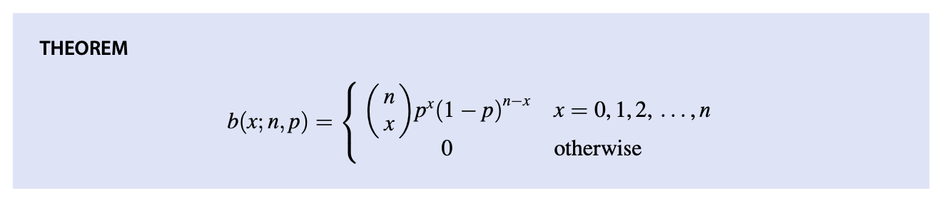 Where n is the number of trials with a success probability p, x is the number of successes of X.