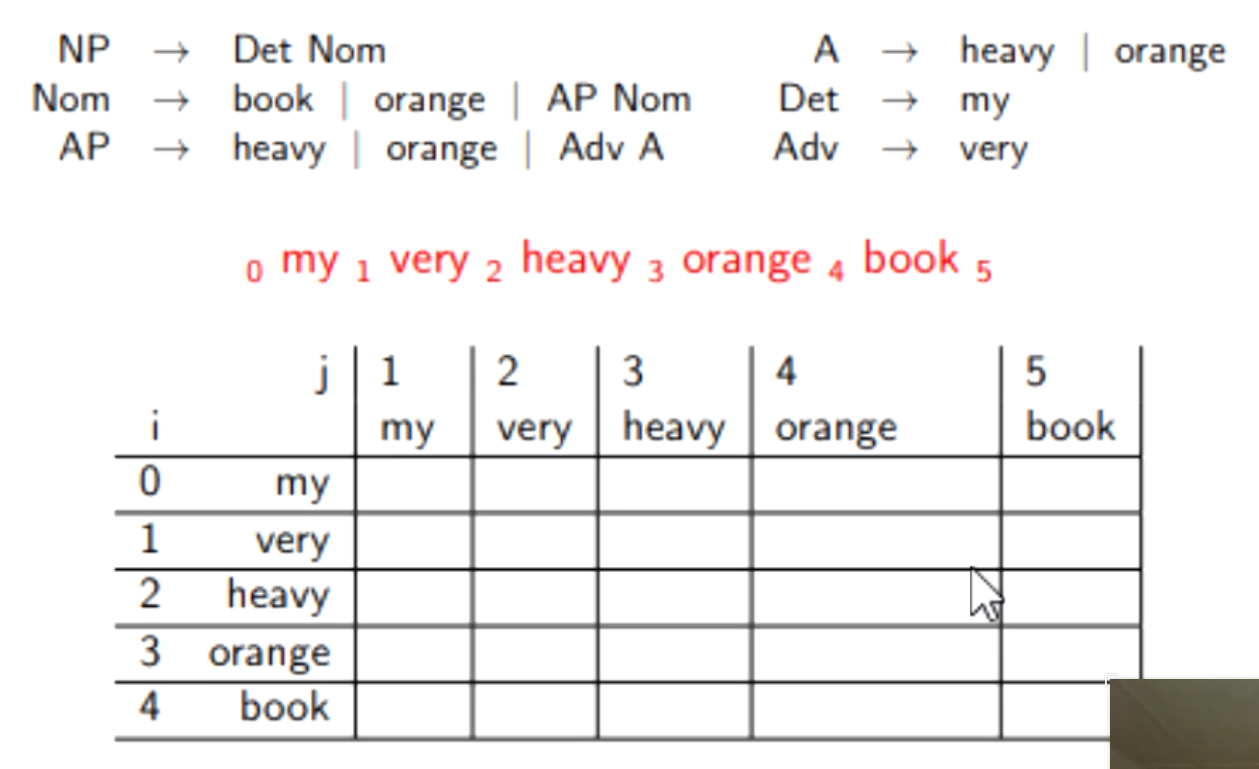 It’s a dynamic programming algorithm to convert any Context Free Language sentence into a Syntax Tree (parse or abstract). It works on exclusively Chomsky Normal Form. It’s a bottom-up algorithm.