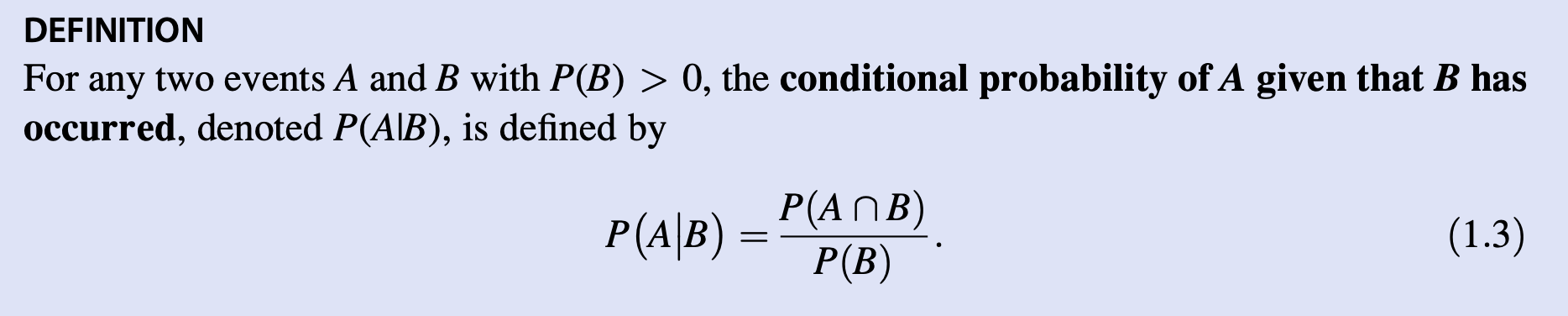 It’s all about getting the probability of something given another event has already occurred. For example, the probability someone has a disease is low. But if they get a blood test that indicates bad sign, the probability goes up. Morbid, I know, but it’s what the textbook gave.