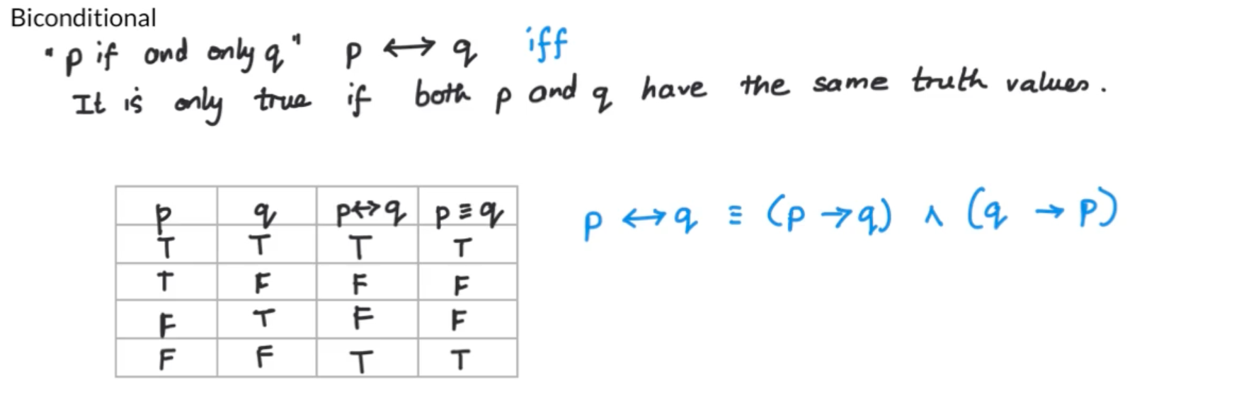 With reference to Logical Connectives: A statement that combines propositions: If p then q, pāq. Biconditional