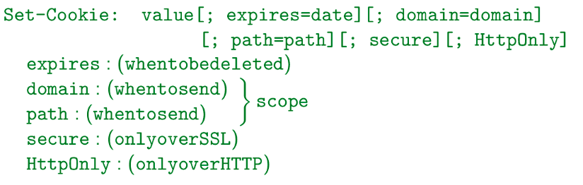 - Controls how accessible cookies are with flags: