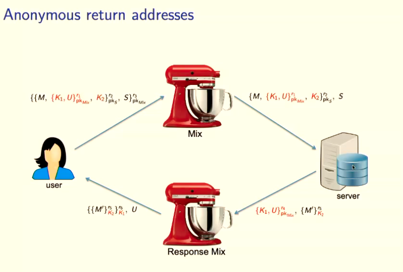 - If you send a request, you need to include a “return address” encrypted with the mixer’s public key. That way, you send a request, the mixer batches it, sends it to the server, the server responds to the mixer and mixer returns to you.