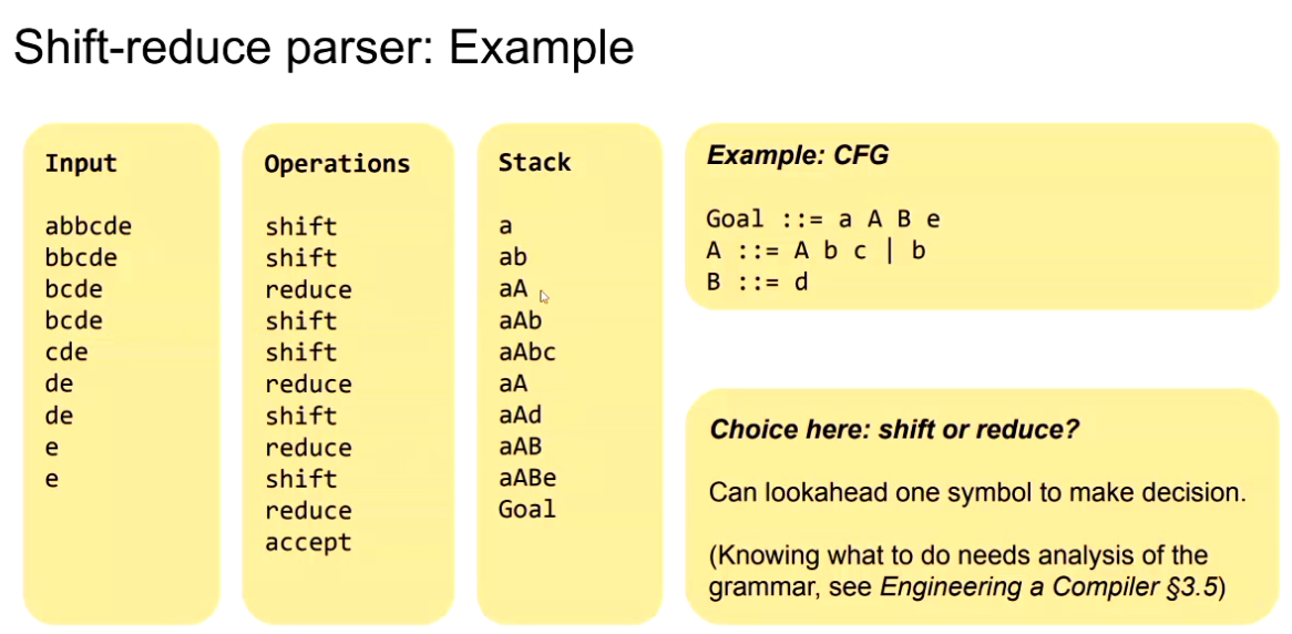 Similarly to the top-down parser, can back-track if wrong decision made or try to look ahead.