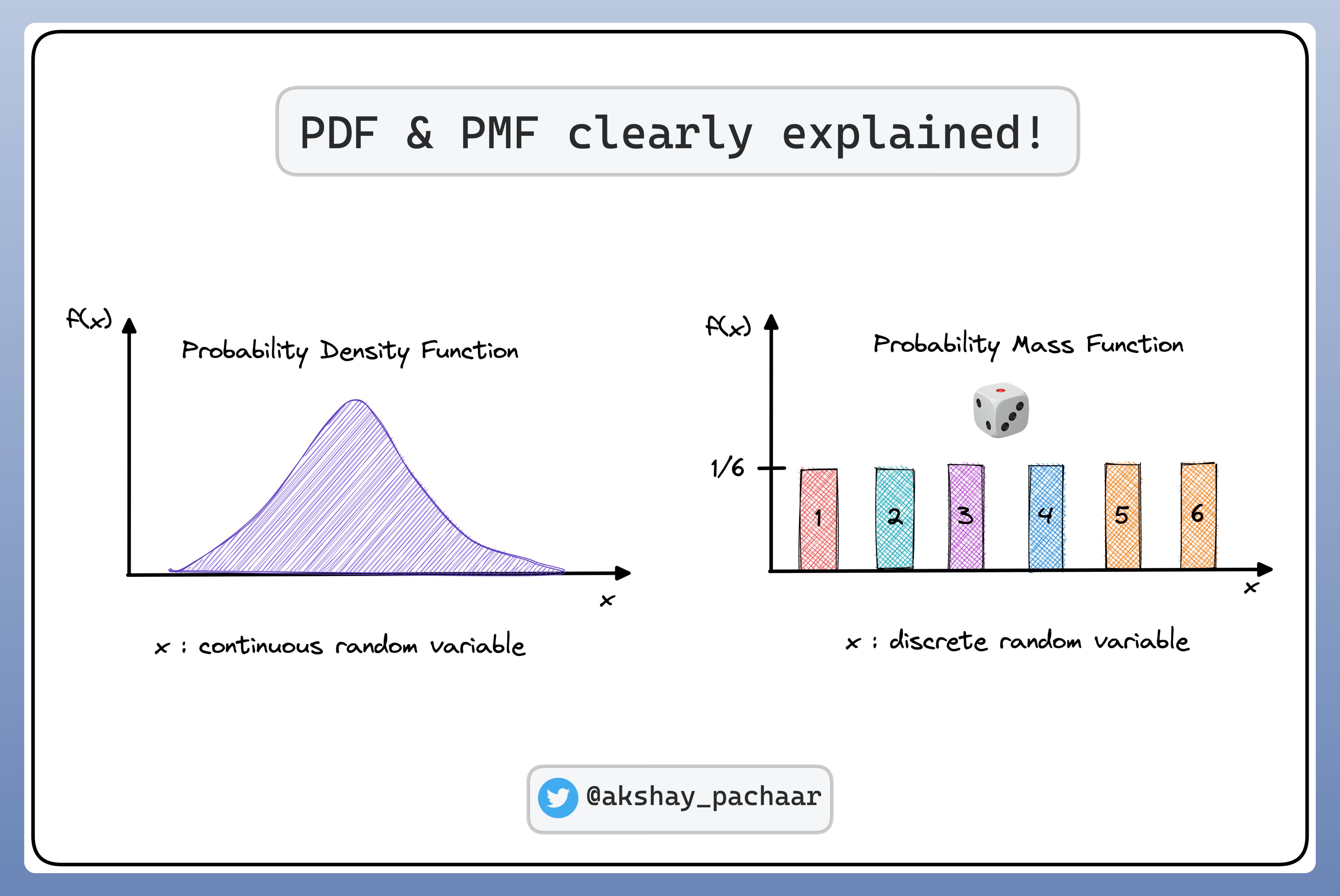 There’s 2 many types of Probability distributions, including the PMF and PDF: