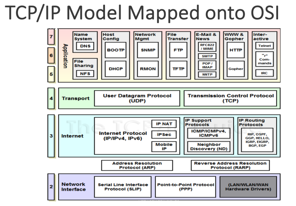 It’s the set of networking protocols that establish a standardised way different systems communicate with each other, regardless of software / hardware environments. It’s split into layers: