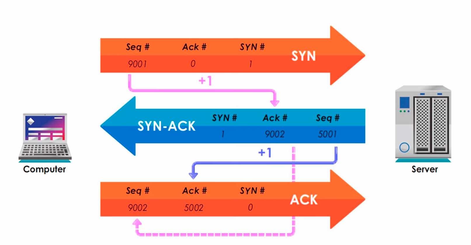 SYN-ACK. - “Sure thing! Open one for me too!” - Client acknowledges with